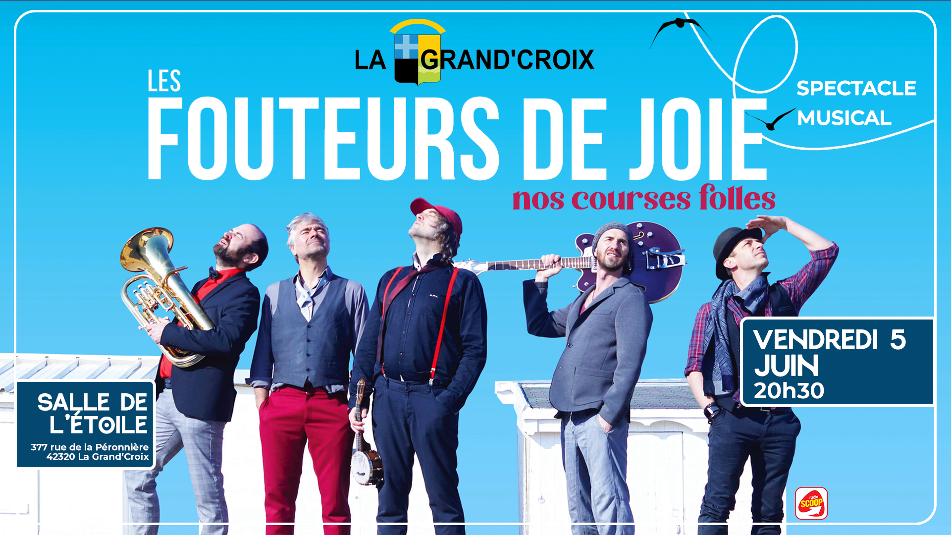 C’est une expérience que les cinq artistes Les Fouteurs de Joie vous proposent : de la chanson spectaculaire, dynamique. Tendre. Éphémère. Une expérience de l’instant, celle de la JOIE. La joie, qui nous fait danser, rire et nous émouvoir !