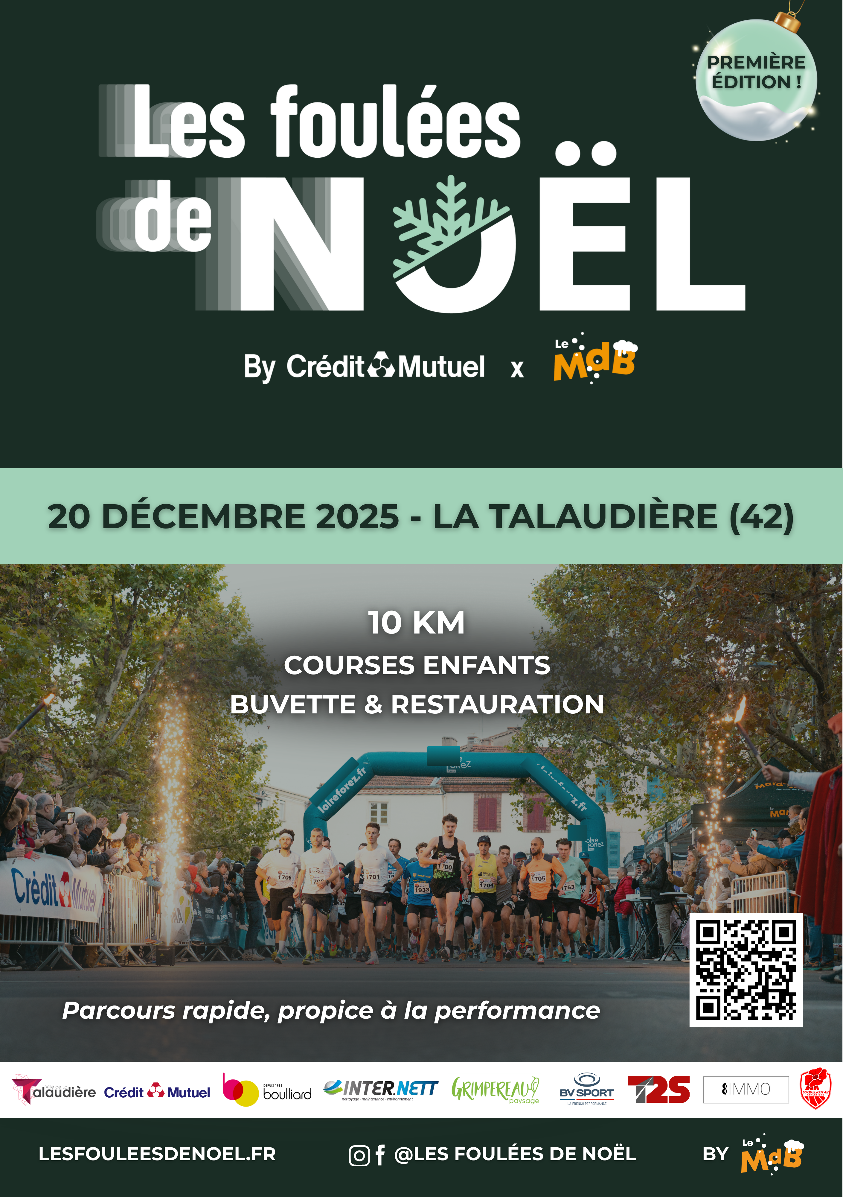Imaginer une course qui mêle performance, convivialité et féérie de fin d’année : tel est le pari des Foulées de Noël. Organisée par l’équipe du Marathon de la Bière, avec son label by MDB, cette course lancera les célébrations de fin d’année dans une ambiance sportive et chaleureuse. Soutenue par la mairie et le Crédit Mutuel de la Talaudière, elle veut rassembler coureurs élites, familles et amateurs de running autour d’un moment fédérateur.