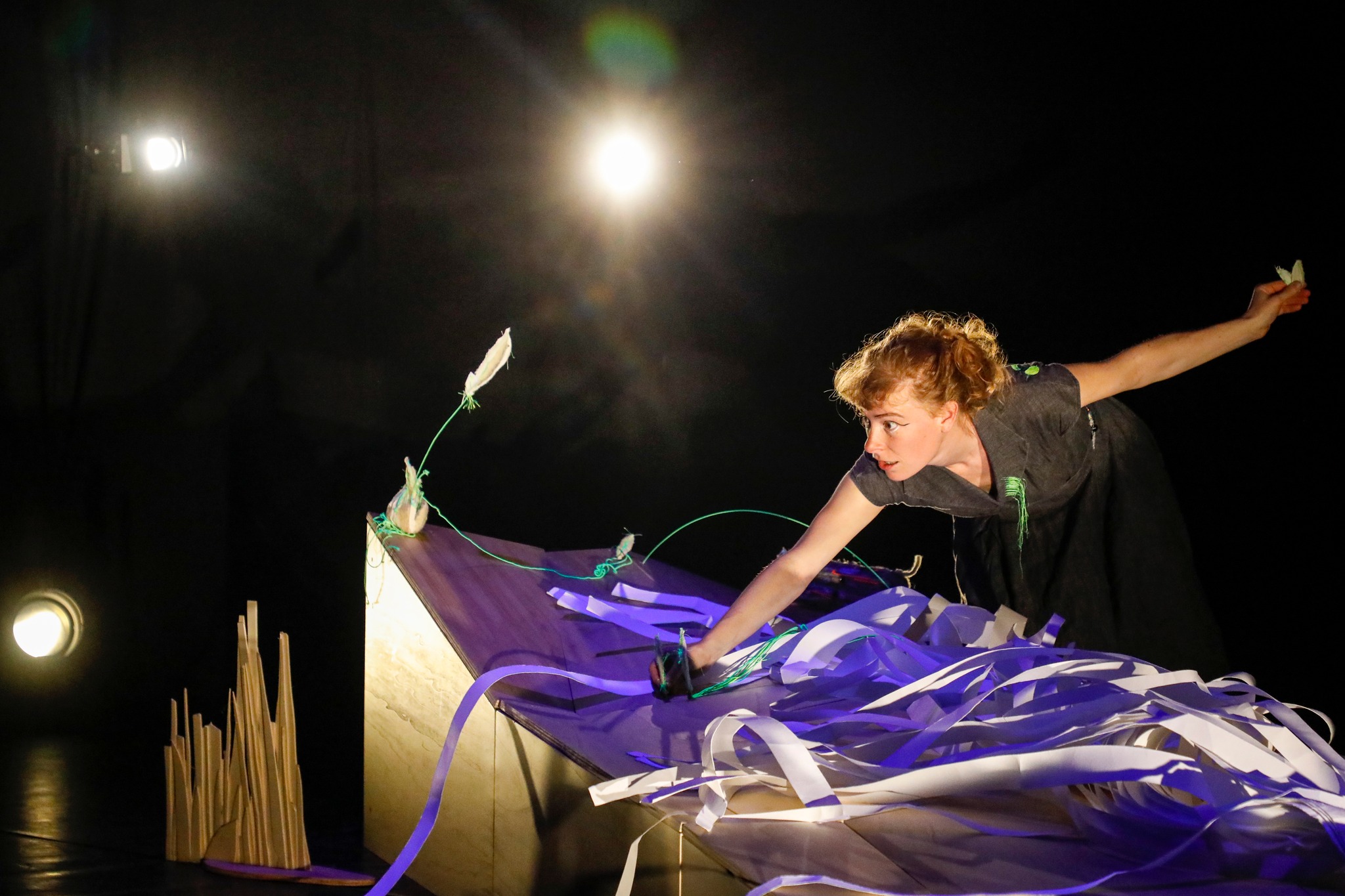 La compagnie Prune a suivi les rivières de France, écouté les langues qui les bordent et recueilli chants et mots oubliés. De ce voyage est né un spectacle poétique et sensoriel, peuplé de marionnettes complices, de paysages sonores, de danses et paroles en cascade. Un retour aux sources où l’eau devient langage, et le langage, mélodie. Sur un bord de rivière on découvre grenouille, héron, menthe à l’eau et traine-bûches…