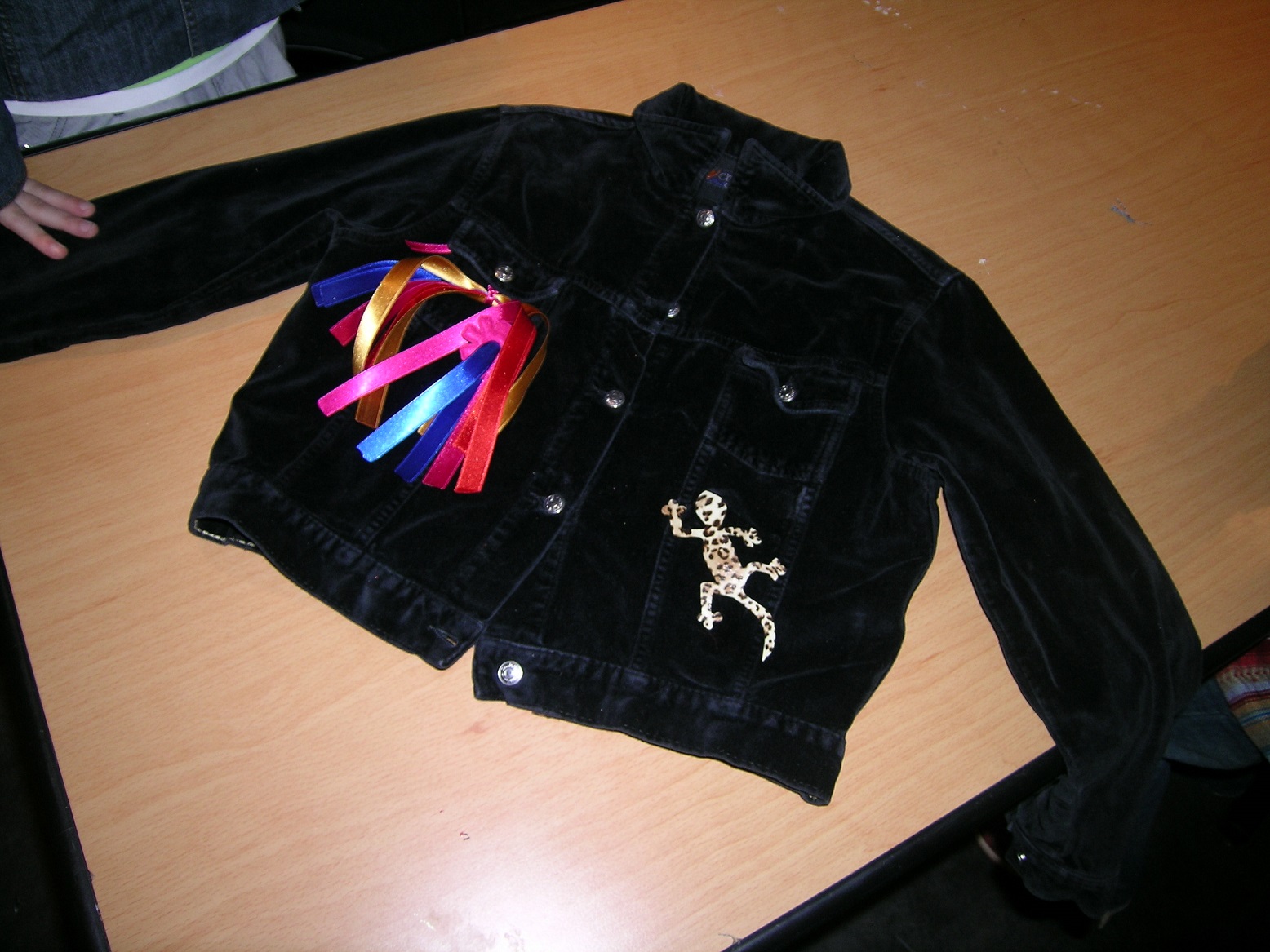 Puis on ajoute des rubans pour détourner et orner, avec de la colle textile, des épingles, des aiguilles, du fil…