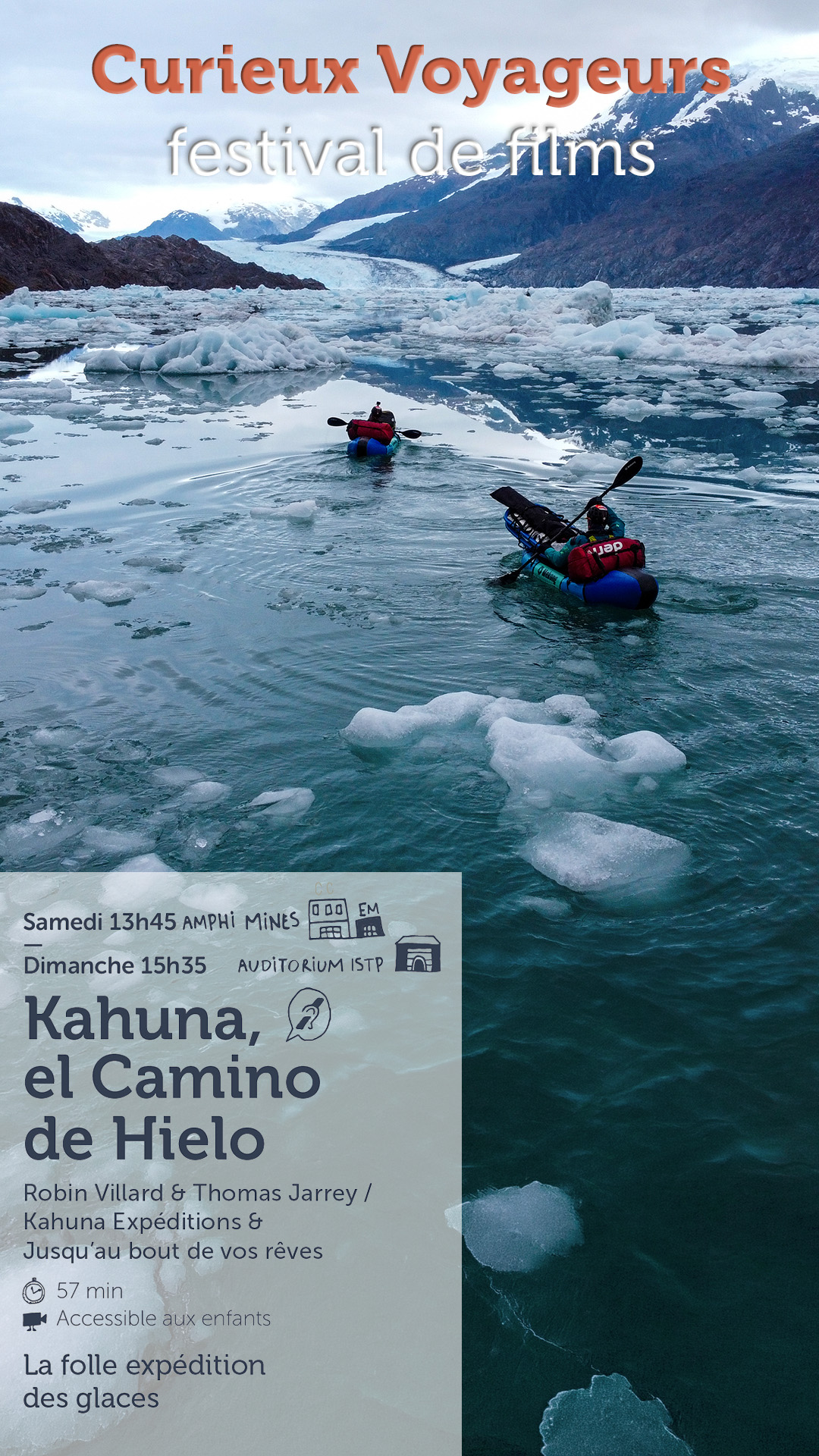 En totale autonomie, à travers rivières, lacs et champs de glace, en packraft, à pied ou à ski, Baptistin, Robin, Thomas et Vincent s’engagent dans une aventure extrême. Au cœur de ce projet, un objectif scientifique : étudier la pollution microplastique touchant les glaciers du sud de la Patagonie si éloignés de toute activité humaine.