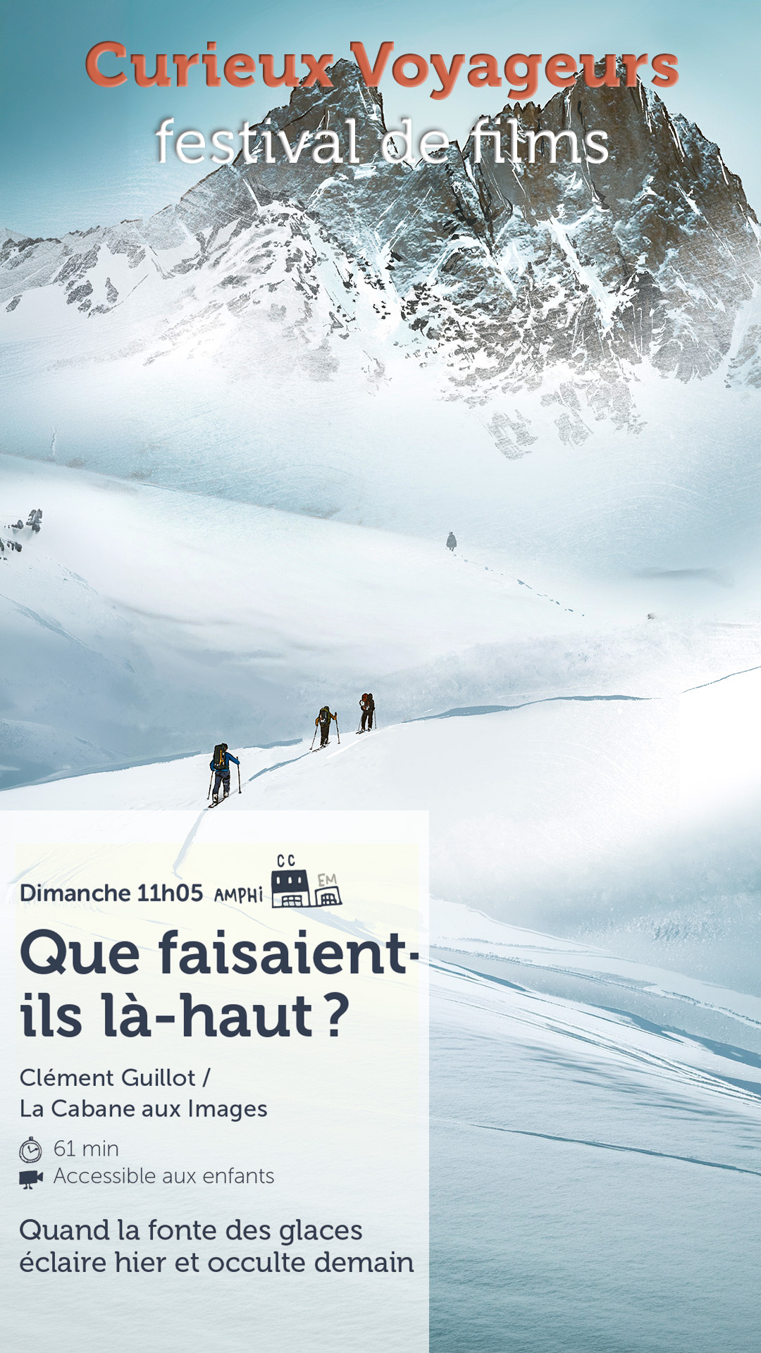 En 1991, il libère le cadavre momifié d’un homme du néolithique vieux de 5300 ans, que l’on nomme Otzi, du nom du Massif de L’Otzal, où il a été retrouvé. Clément Guillot veut comprendre l’histoire de cet homme, aller jusqu’à lui par ses propres moyens. Skis sur l’épaule, direction le Tyrol, pour rapporter un témoignage sur ce qu’il reste encore à défendre là-haut et ici-bas.