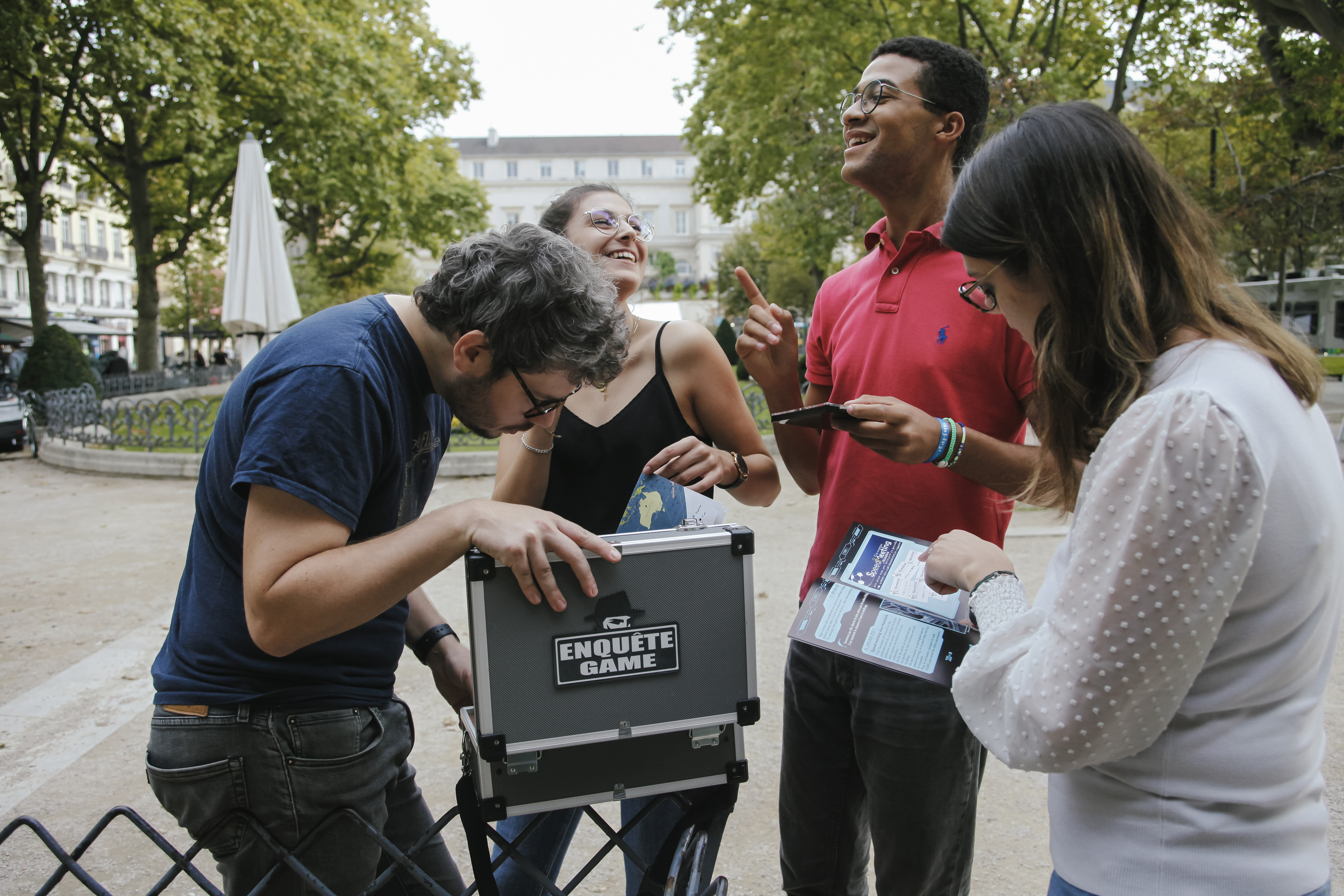 L’Enquête Game est un jeu de piste qui va vous faire traverser la ville de Saint-Étienne dans le but de résoudre une enquête. Votre aide la plus précieuse sera sûrement votre mallette; grâce à son contenu et à vos découvertes dans la ville, vous trouverez des indices et des preuves pour inculper le coupable. Réflexion, mécanisme, et fouille seront les maitres mots pour résoudre les énigmes ! Alors, êtes-vous prêts à relever le défi ?