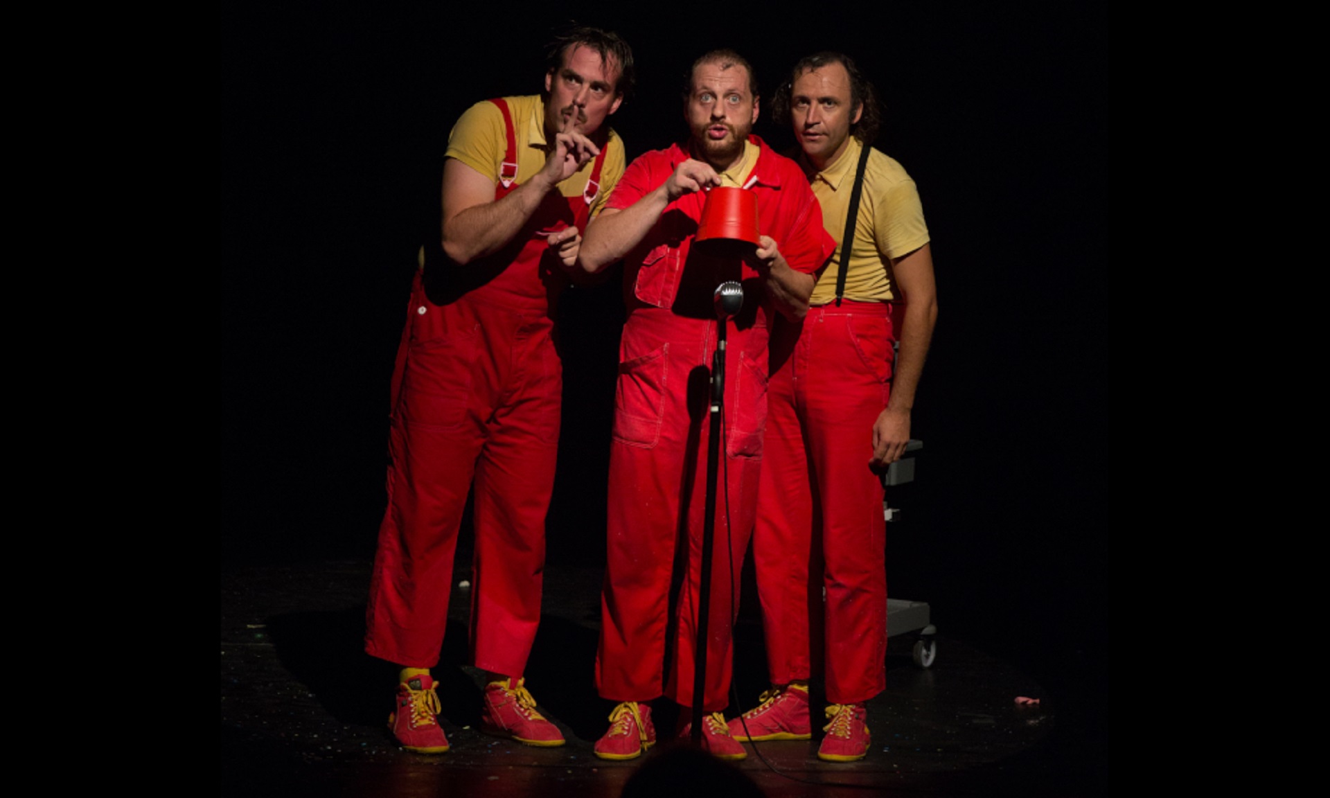 Simples préposés à l’entretien, ils s’affairent à nettoyer la scène pour laisser place au spectacle qui commencera "dans deux minutes"… C’est sans compter sur les heureux incidents qui vont retarder, pour notre plus grand plaisir, la prestation officielle pour laisser place à plus d’une heure de voyage en compagnie d’un trio spécialiste de la transformation d’objets, des chorégraphies improbables et des gags visuels. Balai, serpillière et aspirateur se transforment au gré de leur imagination sous des airs de musique entraînante.