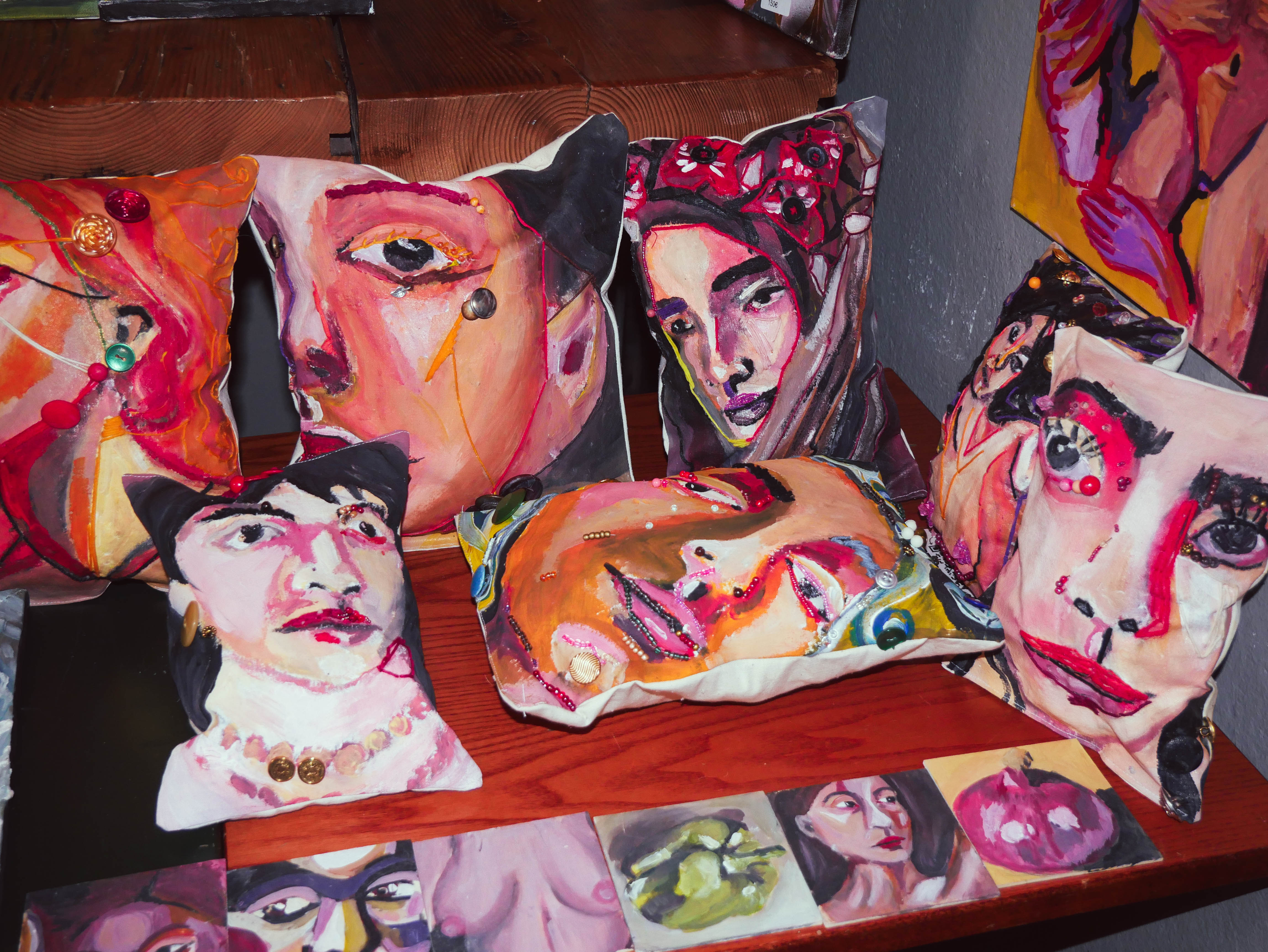 Sa peinture ne cherche ni l’idéalisation ni la narration. Les figures s’y imposent par leur présence, parfois frontale, parfois fragile, toujours ancrée dans une réalité sensible. Comme l’écrivait Frida Kahlo, « Je peins ma propre réalité » — une phrase qui éclaire une œuvre où le corps devient à la fois sujet, matière et territoire d’affirmation. Depuis quelques mois, Lise développe un ensemble de pièces textiles mêlant peinture, broderie et vêtements. Le textile, matériau du quotidien et de l’intime, devient un support plastique à part entière.